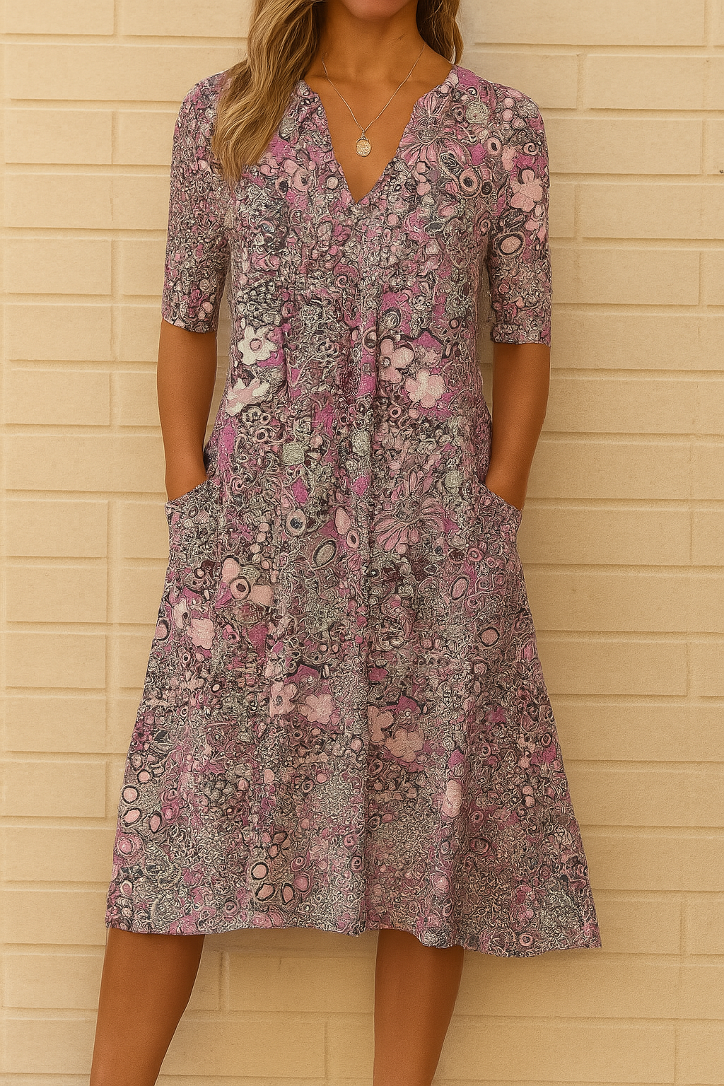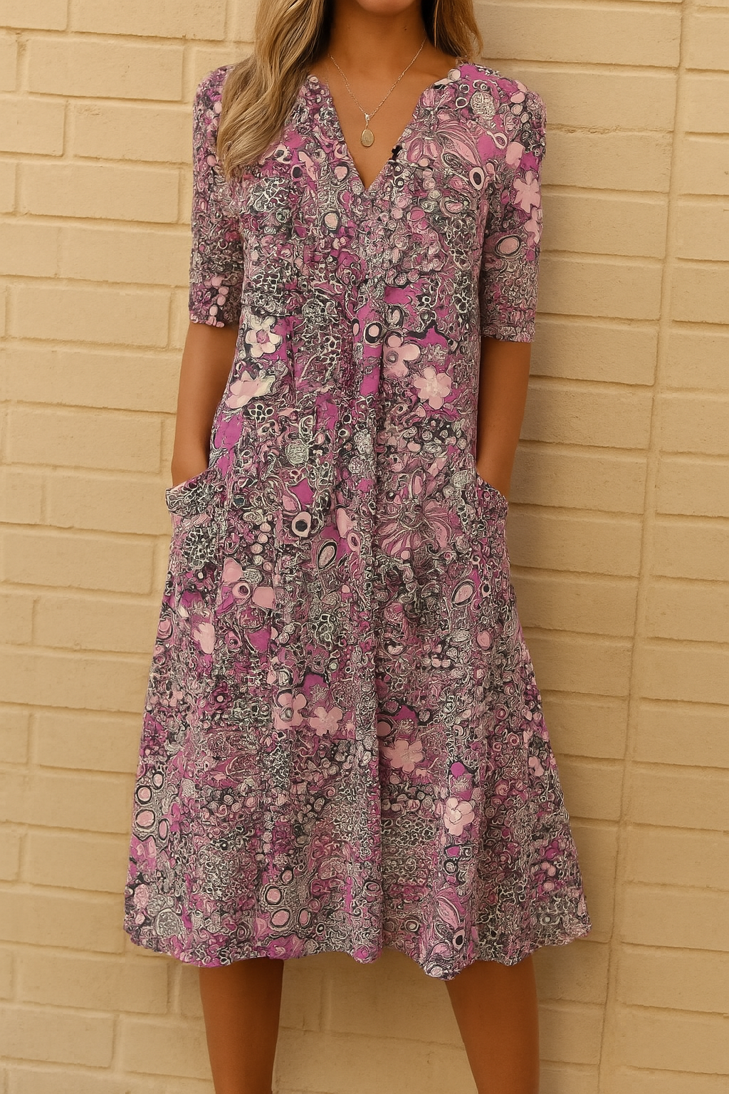 The Petal Reverie dress is your go-to for graceful comfort and timeless style. Whether you’re headed out for brunch or planning an afternoon getaway, it feels as good as it looks—with softness, flow, and a fit that flatters in all the right ways